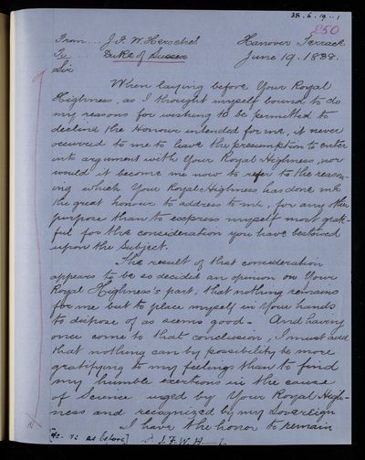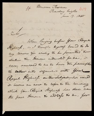 19 August 1838 Sender: Augustus Frederick , Duke of Sussex Prince Augustus Frederick Reference number: HS/1/422