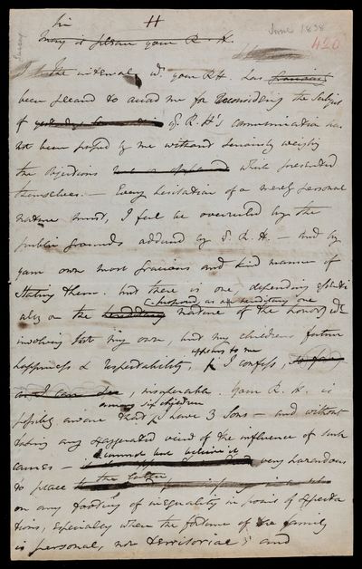 Draft letter. Giving his reasons for not wanting to become a Baronet.