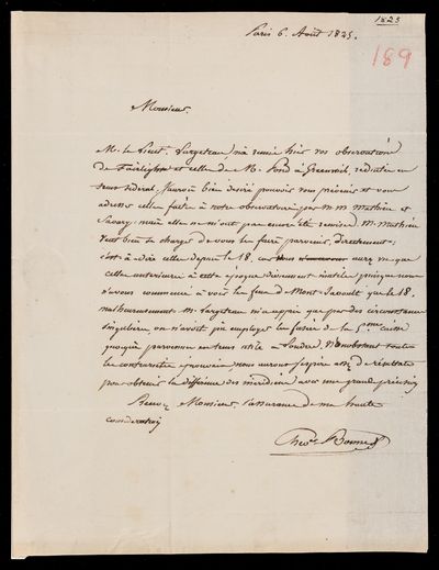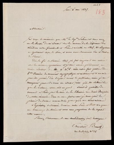 6 March 1825 Sender: Charles Rigobert Marie Bonne Reference number: HS/4/183