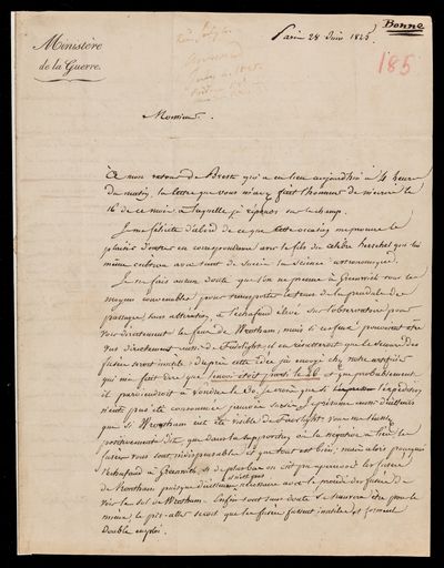 28 June 1825 Sender: Charles Rigobert Marie Bonne Reference number: HS/4/185