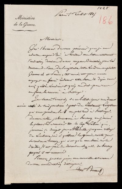 1 July 1825 Sender: Charles Rigobert Marie Bonne Reference number: HS/4/186