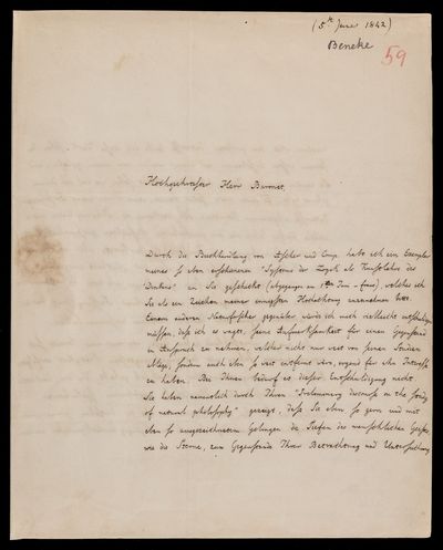 5 June 1842 Sender: Friedrich Eduard Beneke Reference number: HS/4/59