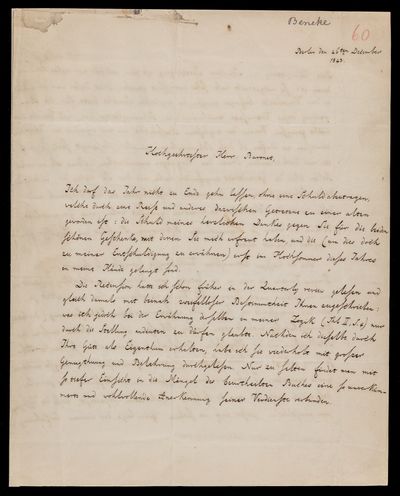 26 December 1843 Sender: Friedrich Eduard Beneke Reference number: HS/4/60Birth of Matilda Rose Herschel, daughter of John Frederick William Herschel and Margaret Brodie Stewart
