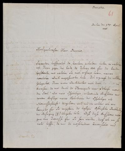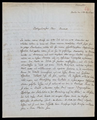 7 April 1845 Sender: Friedrich Eduard Beneke Reference number: HS/4/61