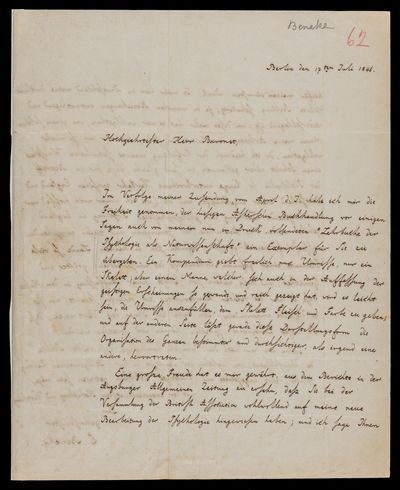 17 July 1845 Sender: Friedrich Eduard Beneke Reference number: HS/4/62