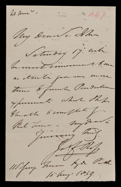 5 May 1847 Sender: John Frederick William Herschel Reference number: MS/257/2/272The Pre-Raphaelite Brotherhood is formed, by John Everett Millais, Dante Gabriel Rosetti and others
