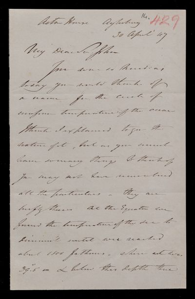 30 April 1847 Sender: James Clark Ross Reference number: HS/14/429