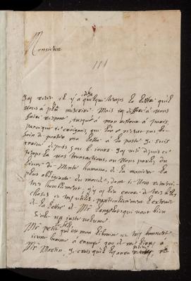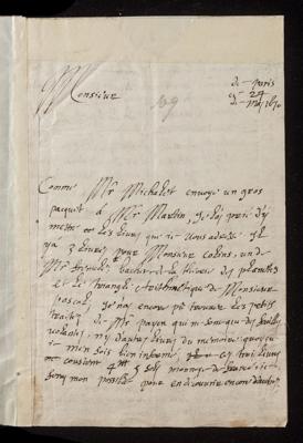 01 December 1672 Sender: Jean Baptiste Du Hamel Reference number: EL/H1/111
