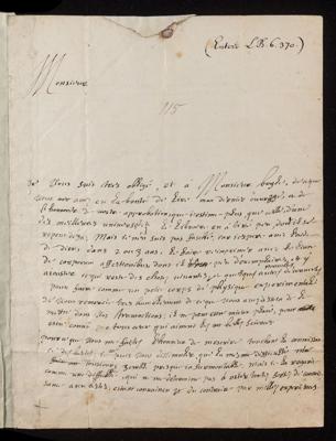 28 June 1670 Sender: Jean Baptiste Du Hamel Reference number: EL/H1/110