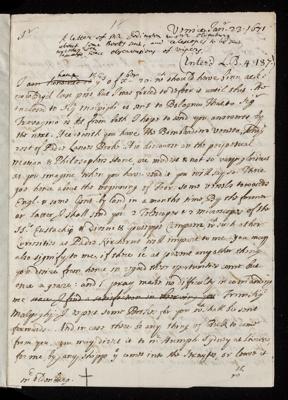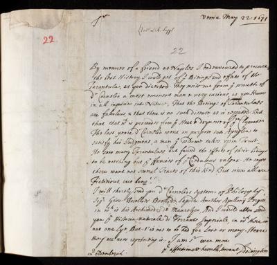 22 May 1671 Sender: John Dodington Reference number: EL/D1/22