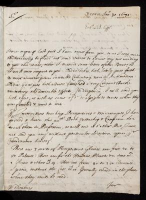 30 January 1671 Sender: John Dodington Reference number: EL/D1/19