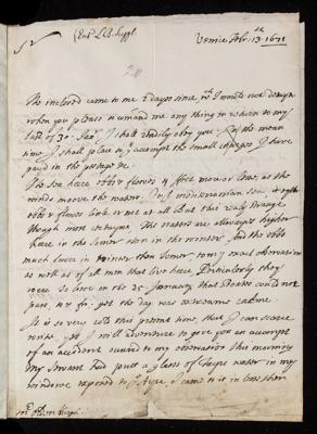 13 February 1671 Sender: John Dodington Reference number: EL/D1/20