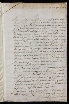 14 April 1671 Sender: John Dodington Reference number: EL/D1/21