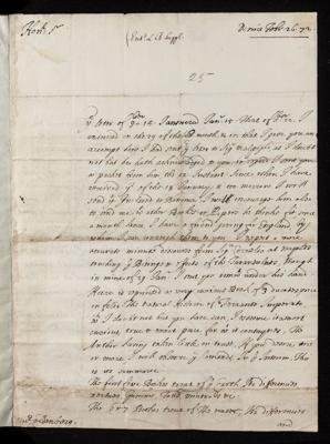 26 February 1672 Sender: John Dodington Reference number: EL/D1/25