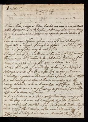 18 March 1672 Sender: John Dodington Reference number: EL/D1/26