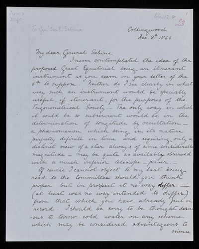 6 December 1866 Sender: Edward Sabine Reference number: HS/15/284