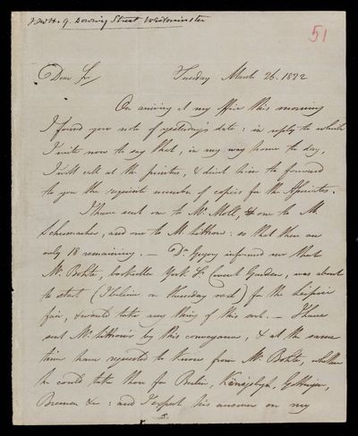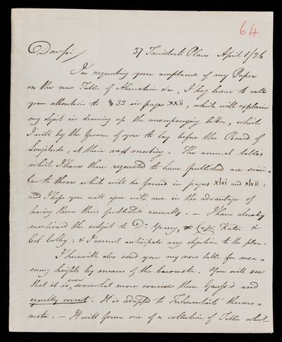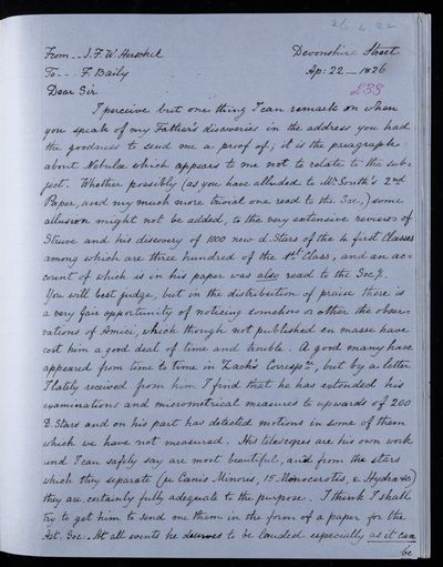 26 March 1822 Sender: Francis Baily , Francis Baily Reference number: HS/3/51