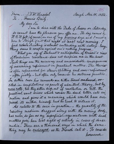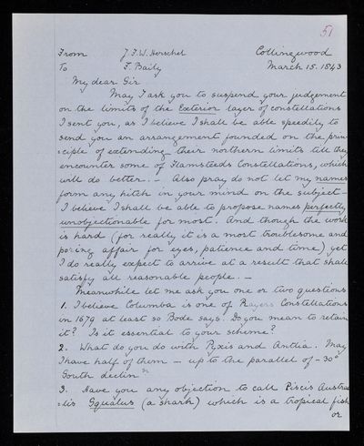 15 March 1843 Sender: John Frederick William Herschel Reference number: HS/25/8/51