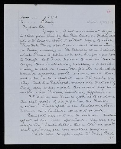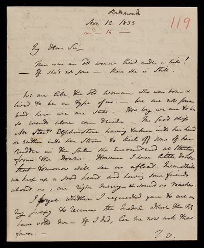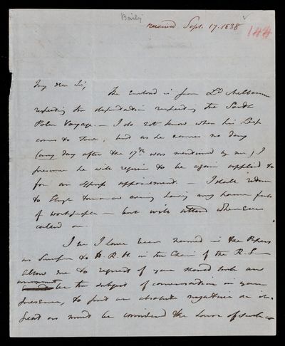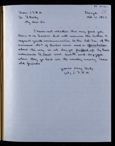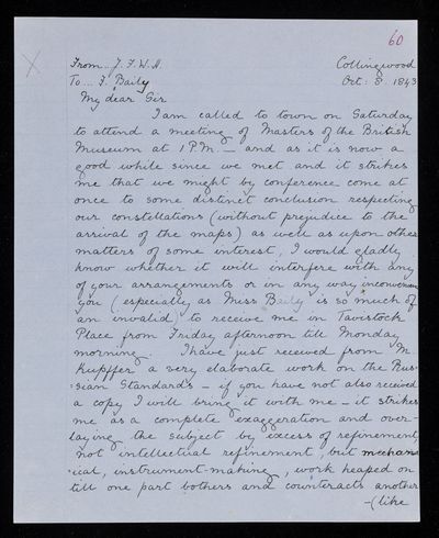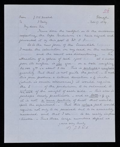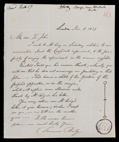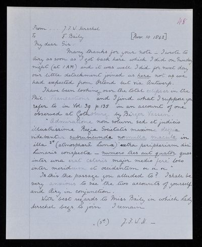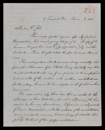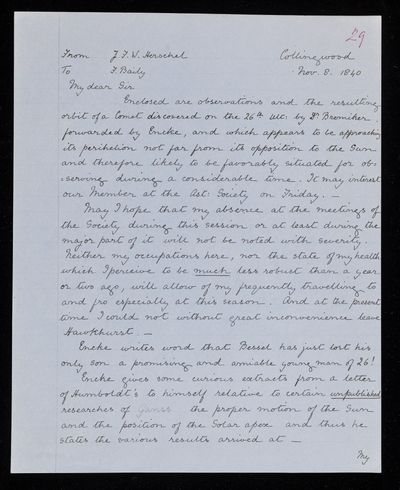 8 November 1843 Sender: Francis Baily , Francis Baily Reference number: HS/3/263