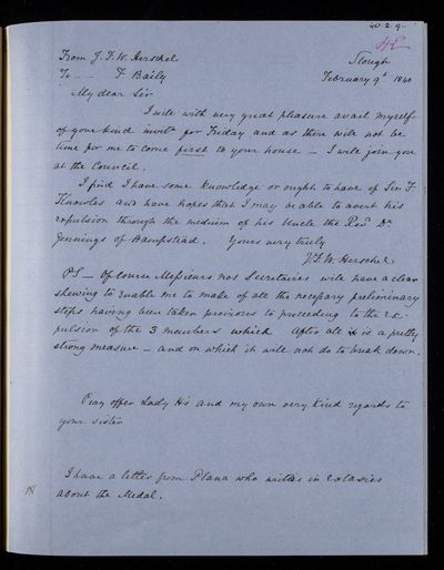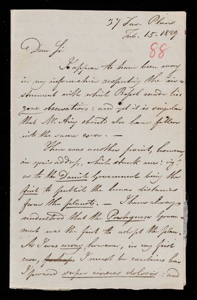 9 February 1822 Sender: Francis Baily , Francis Baily Reference number: HS/3/47