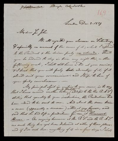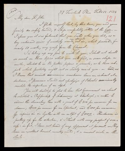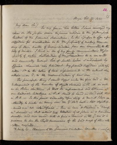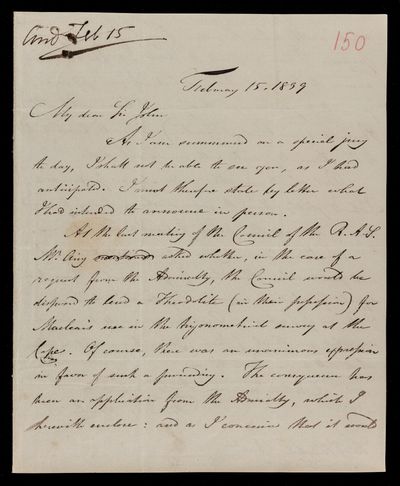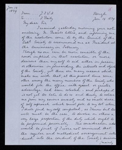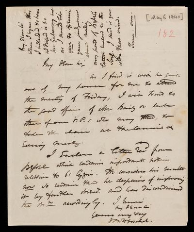 11 February 1844 Sender: John Frederick William Herschel Reference number: HS/25/8/63Sir John Herschel serves as President of the British Association
