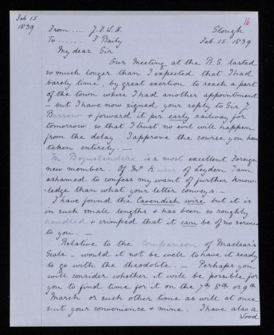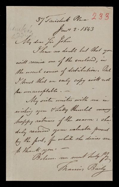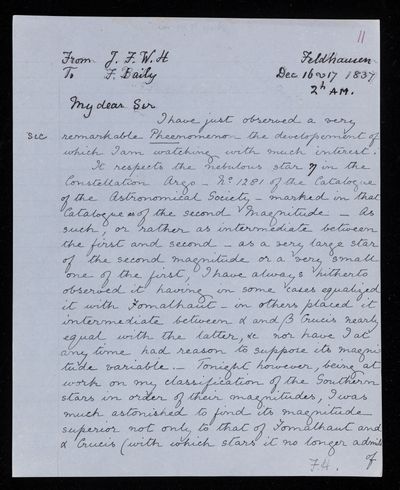 16 December 1843 Sender: Francis Baily , Francis Baily Reference number: HS/3/266