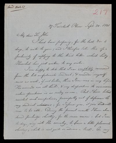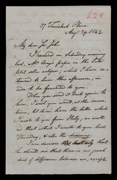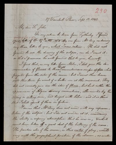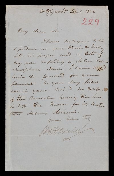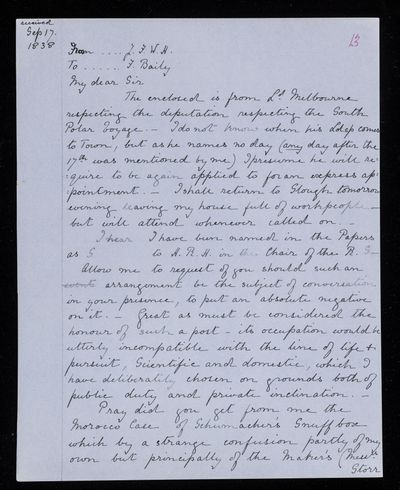 13 September 1843 Sender: John Frederick William Herschel Reference number: HS/3/259