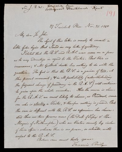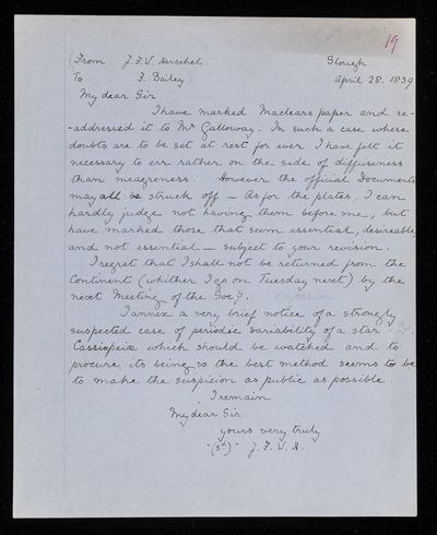 19th century Sender: John Frederick William Herschel Reference number: HS/3/284
