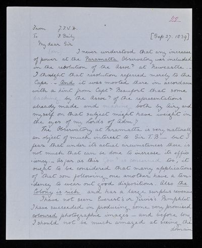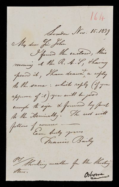 22 November 1843 Sender: Francis Baily , Francis Baily Reference number: HS/3/264