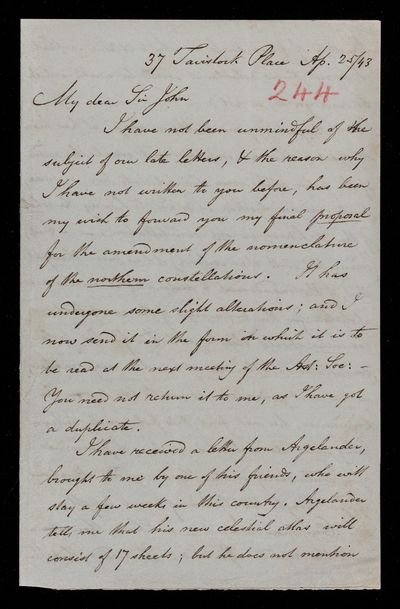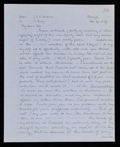 24 July 1843 Sender: Francis Baily , Francis Baily Reference number: HS/3/253