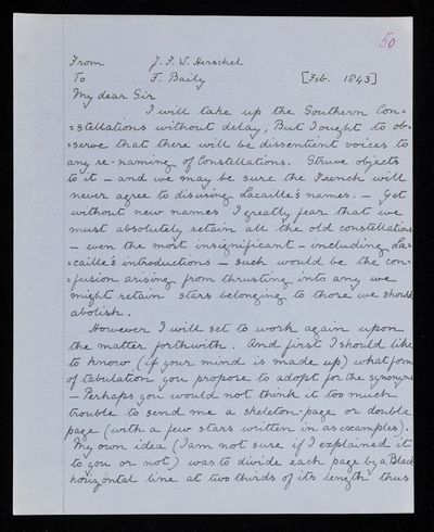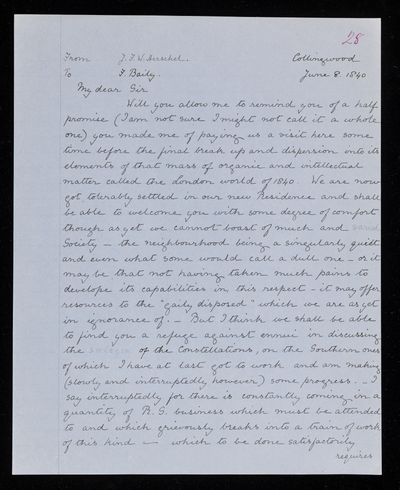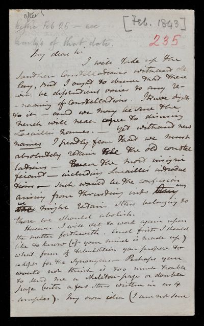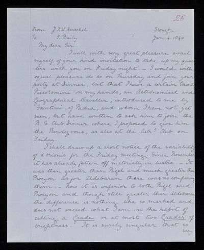 25 February 1843 Sender: John Frederick William Herschel Reference number: HS/25/8/50