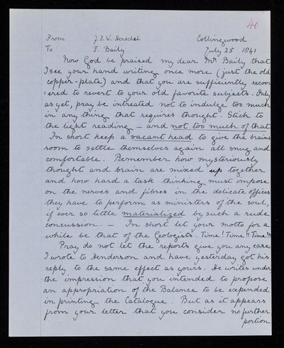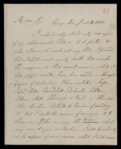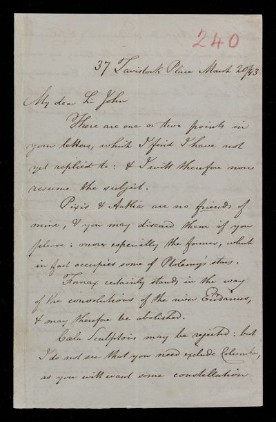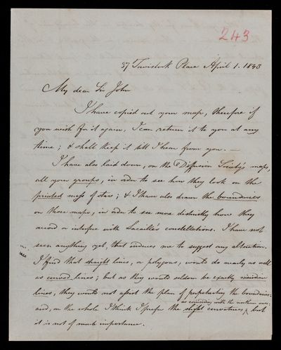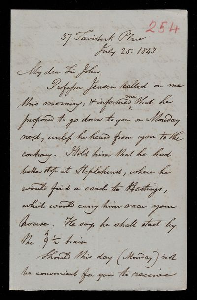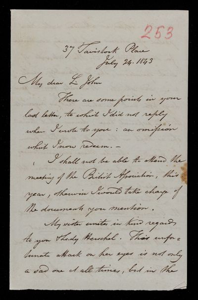 4 July 1843 Sender: John Frederick William Herschel Reference number: HS/3/251