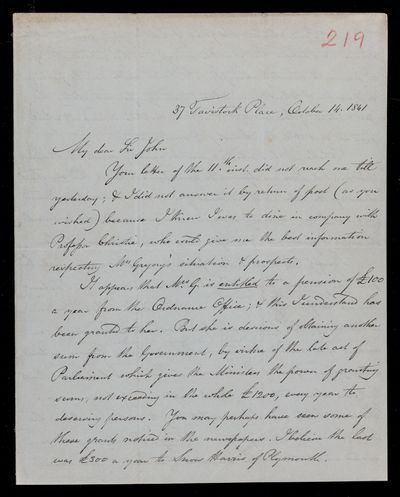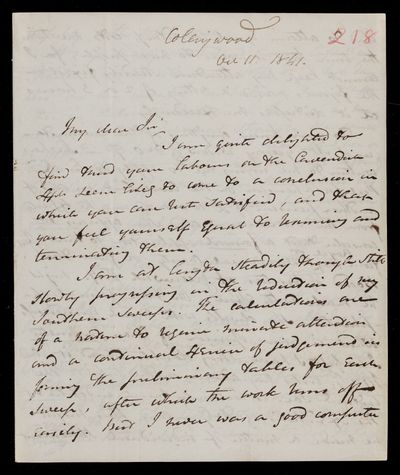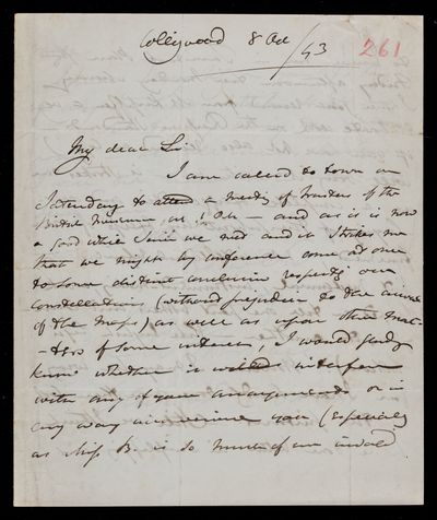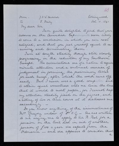 8 October 1843 Sender: John Frederick William Herschel Reference number: HS/3/261