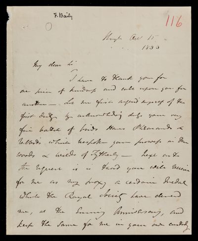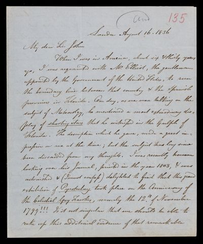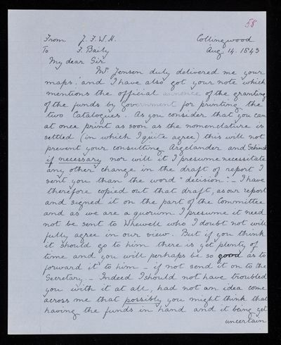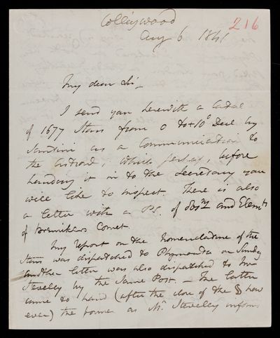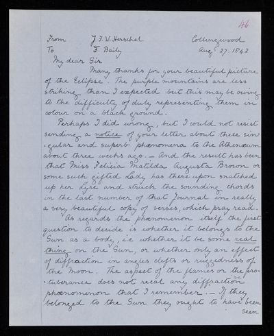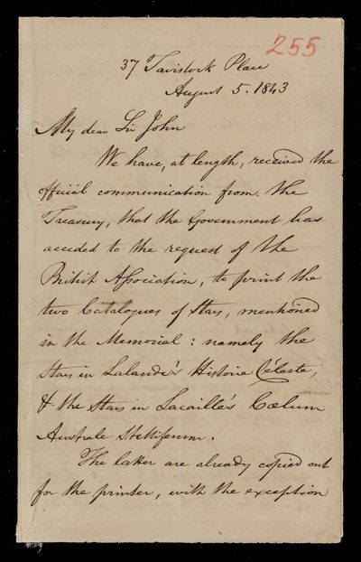 5 August 1843 Sender: Francis Baily , Francis Baily Reference number: HS/3/255