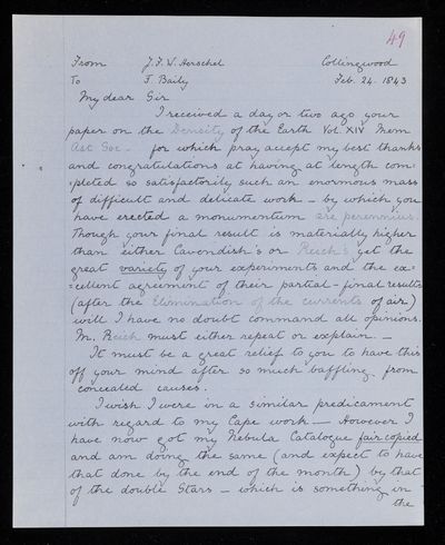 24 February 1843 Sender: John Frederick William Herschel Reference number: HS/25/8/49