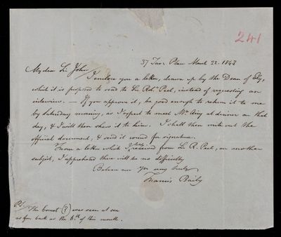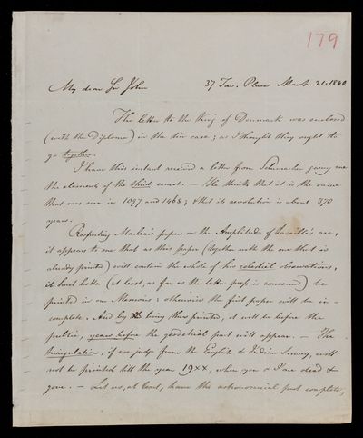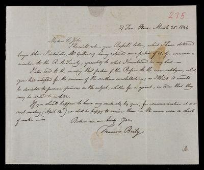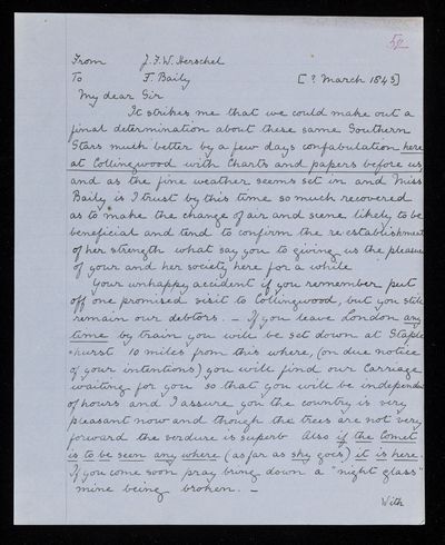 25 March 1844 Sender: Francis Baily , Francis Baily Reference number: HS/3/275