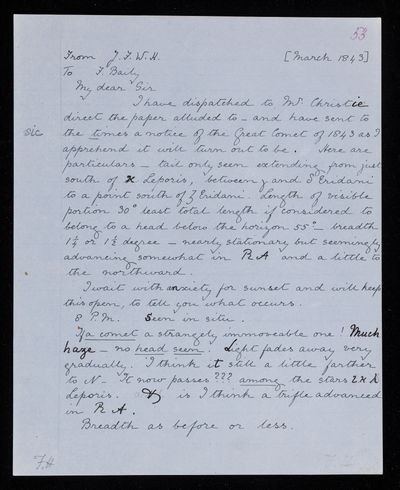 March 1843 Sender: John Frederick William Herschel Reference number: HS/3/281