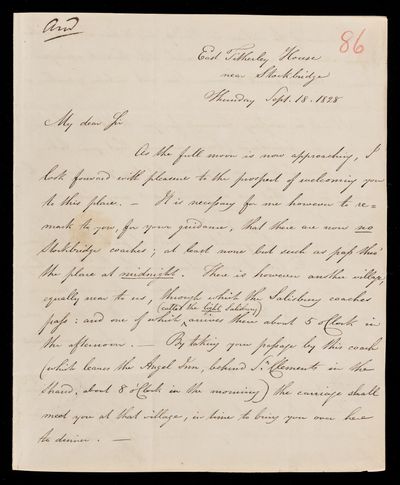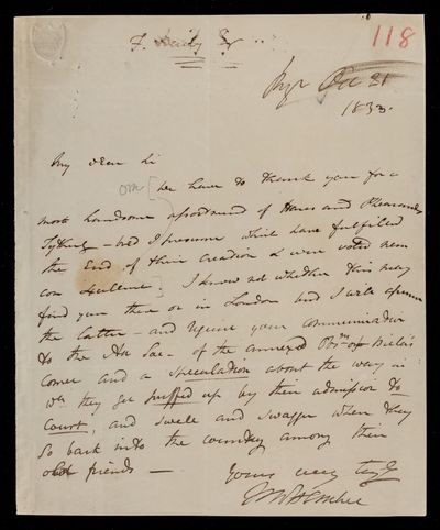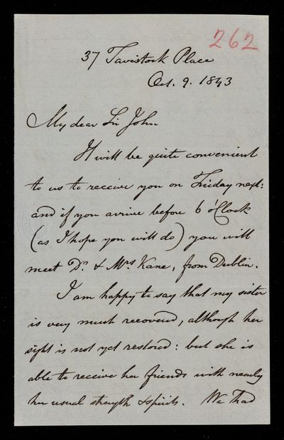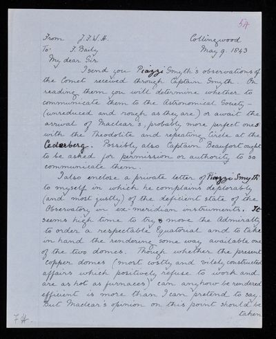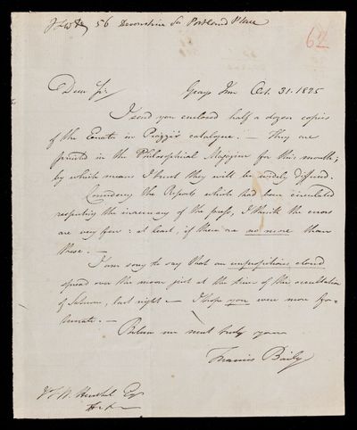 9 October 1843 Sender: Francis Baily , Francis Baily Reference number: HS/3/262