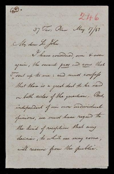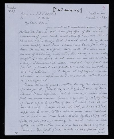 9 May 1843 Sender: John Frederick William Herschel Reference number: HS/25/8/54