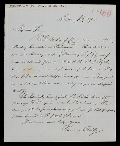 19th century Sender: Francis Baily , Francis Baily Reference number: HS/3/279