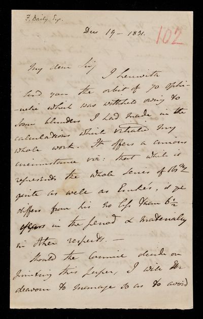14 December 1843 Sender: John Frederick William Herschel Reference number: HS/25/8/61