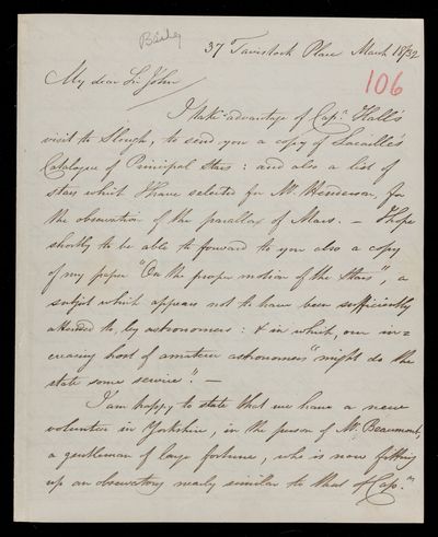 6 March 1822 Sender: Francis Baily , Francis Baily Reference number: HS/3/49