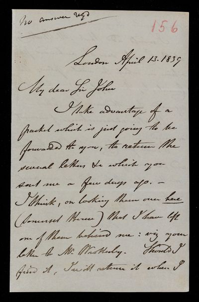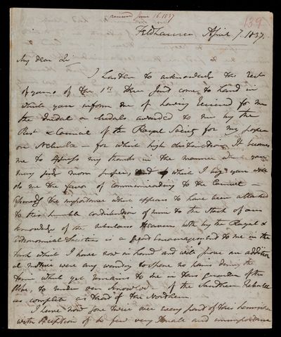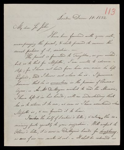 13? March 1843 Sender: John Frederick William Herschel Reference number: HS/3/280