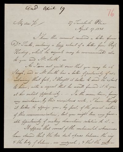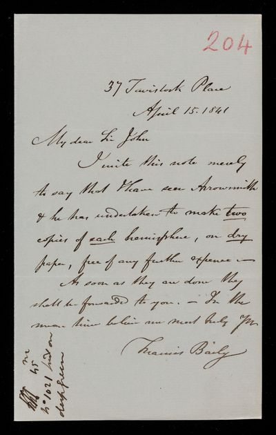 19 April 1821 Sender: Francis Baily , Francis Baily Reference number: HS/3/41