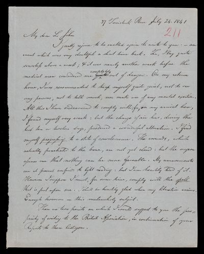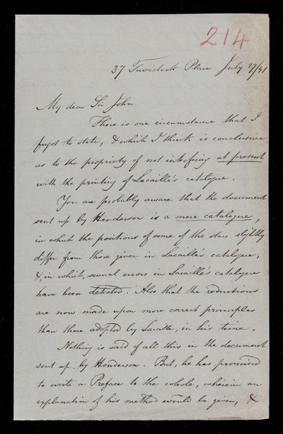 25 July 1843 Sender: Francis Baily , Francis Baily Reference number: HS/3/254