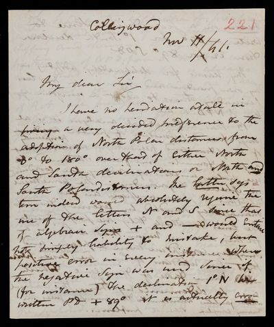 Autograph letter signed by sender. Gives his own views regarding 'Argo' and the renaming of the constellations.
