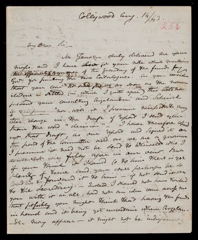 14 August 1843 Sender: John Frederick William Herschel Reference number: HS/3/256