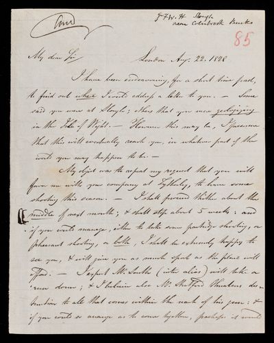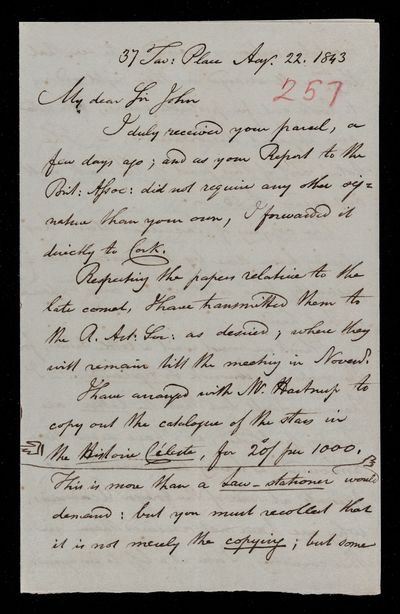 22 August 1843 Sender: Francis Baily , Francis Baily Reference number: HS/3/257