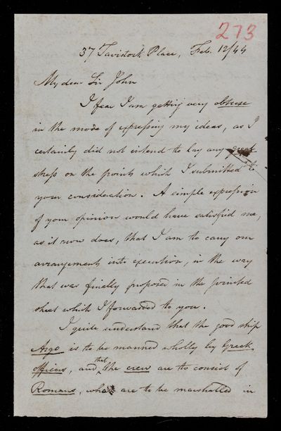 11 February 1844 Sender: John Frederick William Herschel Reference number: HS/3/272