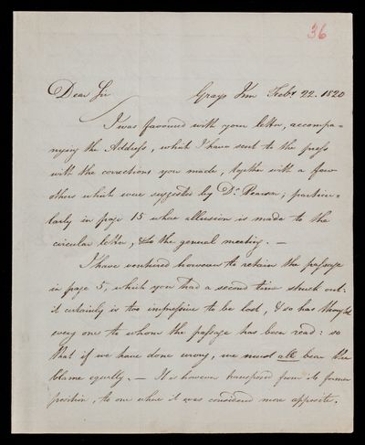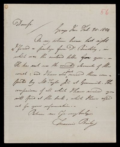 22 February 1820 Sender: Francis Baily , Francis Baily Reference number: HS/3/36